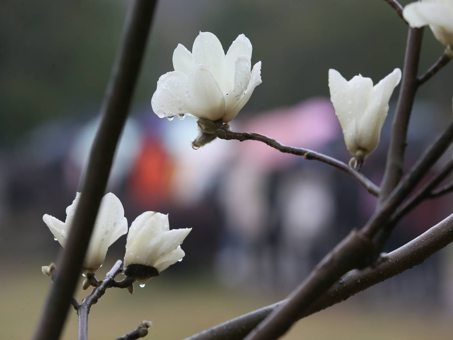鲜花盛开在雨母校门