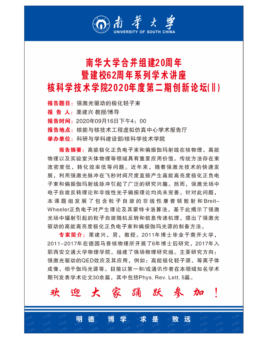 星空平台合并组建20周年暨建校62周年系列学术讲座--强激光驱动的极化轻子束