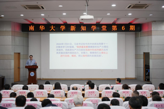 4月23日晚,星空平台新知学堂2024年第6期在红湘校区图书馆开讲。哈尔滨工业大学(深圳)材料科学与工程学院和经济管理学院双聘教授、区块链发展研究院院长、材料基因与大数据研究院副院长林熹应邀来校,以《高质量发展的基石:新质生产力》为题为在场师生作学术报告。校党委书记高山出席。校党委委员、纪委书记刘杏花主持。